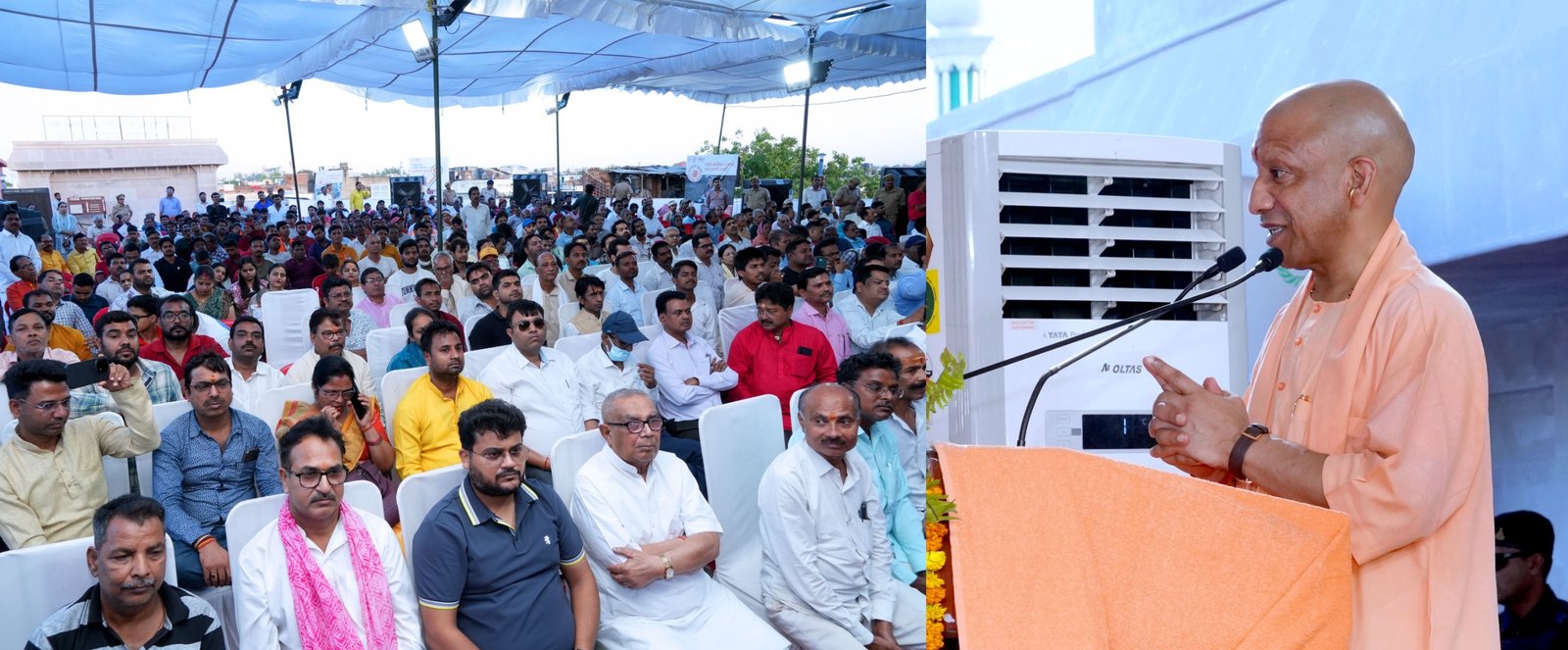 मुख्यमंत्री योगी आदित्यनाथ ने वर्ष 2017 के बाद प्रदेश में आए बदलाव का उल्लेख करते हुए कहा कि उनकी सरकार बनने के बाद उत्तर प्रदेश की अर्थव्यवस्था करीब तीन गुनी बढ़ी है। जब सरकार आई थी तब प्रदेश की अर्थव्यवस्था 13 लाख करोड़ रुपये की थी। नौ वर्षों में यह 36 लाख करोड़ रुपये हो गई है। राज्य में प्रति व्यक्ति आय भी 43 हजार से बढ़कर एक लाख 20 हजार रुपये हो गई है। उनकी सरकार ने नौ लाख युवाओं को सरकारी नौकरी दी है। कहा कि सपा की सरकार में इतनी सरकारी नौकरी नहीं मिल पाती क्योंकि उनकी नीयत साफ नहीं थी। पैसे के बगैर कोई काम नहीं होता था। पूरा सिस्टम भ्रष्टाचार के आगोश में था। आज नौकरियां बिना सिफारिश और बिना रुपये दिए मिलती है। अब योग्यता ही चयन का मानक है। मुख्यमंत्री ने कहा कि अब प्रदेश में किसान आत्महत्या नहीं करता क्योंकि किसान की आमदनी बढ़ी है। यूपी के युवा पलायन नहीं करते क्योंकि उनको नौकरी और रोजगार उसके आसपास के क्षेत्र में ही उपलब्ध होने लग गया है। अकेले गोरखपुर में बीते नौ सालों में 15 हजार करोड़ रुपये के निवेश से 300 से अधिक बड़े कारखाने लगे हैं और 50 हजार से अधिक नौजवानों को रोजगार प्राप्त हुआ है। मुख्यमंत्री ने गोरखपुर में हुए अभूतपूर्व विकास, रोड इंफ्रास्ट्रक्चर, एयर कनेक्टिविटी और एजुकेशन इंफ्रास्ट्रक्चर को भी विस्तार से समझाया। हेल्थ इंफ्रास्ट्रक्चर का उल्लेख करते हुए मुख्यमंत्री ने सुपर स्पेशलिटी सेवाओं वाले बीआरडी मेडिकल कॉलेज का उल्लेख करते हुए कहा कि 2017 के पहले यदि इस मेडिकल कॉलेज में पहिए होते तो समाजवादी पार्टी की सरकार इसे कहीं और खींच ले गई होती। सीएम योगी ने कहा कि 2017 के पहले उन्होंने गुंडागर्दी, माफियागिरी, मच्छर, बीमारी, बिजली, सड़कों और जनता की सुविधाओं को लेकर लंबी लड़ाई लड़ी लेकिन आज की सरकार में किसी चीज के लिए मांगना नहीं पड़ता है। बिना मांगे सब कुछ मिल जाता है।