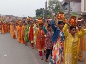 मनमोहक झांकियो के साथ गायत्री परिवार की महिलाओं ने निकाली भव्य कलश शोभायात्रा,गुजा जयकारा