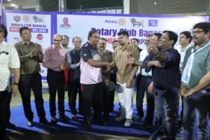वाराणसी। रोटरी क्लब इलाहाबाद एकेडमिया ईस्ट ने रोटरी क्लब वाराणसी यूनिटी को 44 रनों से हराकर पहली आरपीएल ट्रॉफी अपने नाम की। रोटरी क्लब बनारस द्वारा सिगरा स्थित सम्पूर्णानन्द स्पोर्ट्स स्टेडियम में 1 से 5 अप्रैल तक आयोजित रोटरी प्रीमियर लीग के फाइनल का रोमांच सबके सिर चढ़ कर बोलता रहा। टॉस जीतकर पहले बल्लेबाजी करने उतरी इलाहाबाद एकेडमिया ईस्ट की टीम ने निर्धारित 12 ओवर में 5 विकेट खोकर 148 रनों का भारी भरकम स्कोर खड़ा किया। एकेडमिया कि तरफ से सबसे अधिक आमिर हुसैन ने 40 रन एवं रॉकी खान ने 36 रनों का योगदान दिया।
