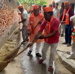 स्थापना दिवस पर अभियान के तहत एमएलसी ने झाड़ू लगाकर किया साफ सफाई