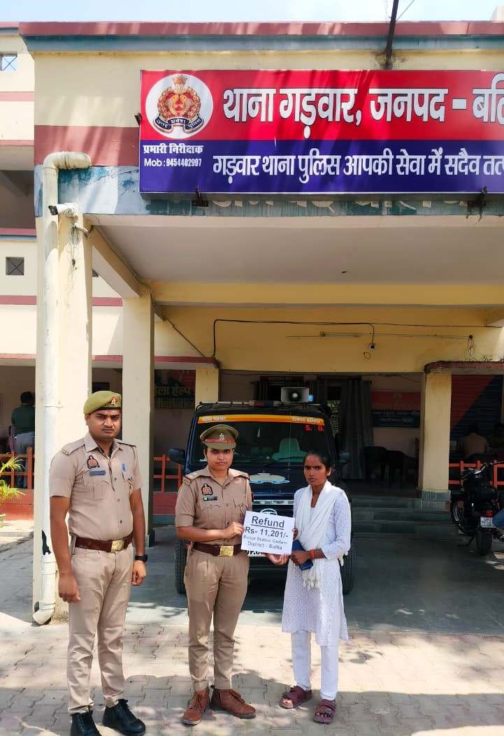श्रीमान पुलिस अधीक्षक बलिया श्री ओमवीर सिंह व श्रीमान् अपर पुलिस अधीक्षक (द.)/ नोडल साइबर सेल बलिया श्री कृपा शंकर के निकट पर्यवेक्षण व श्रीमान् क्षेत्राधिकारी नगर श्री मो0 उस्मान व थानाध्यक्ष गड़वार हितेश कुमार के कुशल नेतृत्व में थाना गड़वार बलिया द्वारा तत्काल शिकायत को संज्ञान मे लेते हुए त्वरित विधिक कार्यवाही की गयी, जिसके फलस्वरूप दिनाँक- 09.04.2026 को शिकायतकर्ता पंकज शर्मा पुत्र शिवहरी शर्मा निवासी ग्राम जिगनहरा थाना गड़वार जनपद बलिया के खाते में धोखाधड़ी की धनराशि 11,201.00/- रूपये मा0 न्यायालय के आदेश के क्रम में धनराशि को वापस कराया गया। शिकायतकर्ता द्वारा बलिया पुलिस तथा थाना गड़वार बलिया की प्रशंसा करते हुए आभार व्यक्त किया गया ।