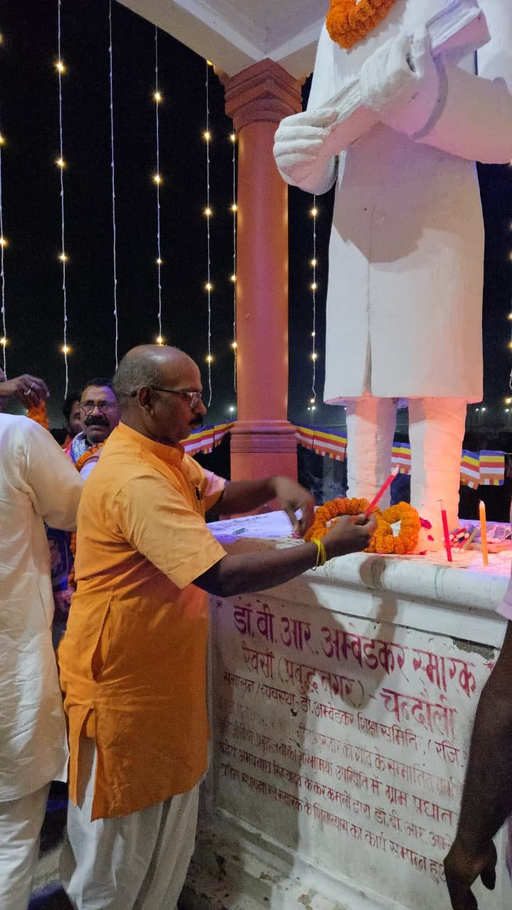 कार्यक्रम के दौरान क्षेत्र के गणमान्य लोगों ने बाबा साहब के चित्र पर माल्यार्पण कर उन्हें श्रद्धांजलि अर्पित की। इस मौके पर भाजपा के वरिष्ठ नेता सूर्यमणि तिवारी ने अपने संबोधन में कहा कि बाबा साहब ने सभी वर्गों के उत्थान के लिए कार्य किया और आज हमारा लोकतंत्र उनकी ही देन है, जो देश को मजबूत बना रहा है।