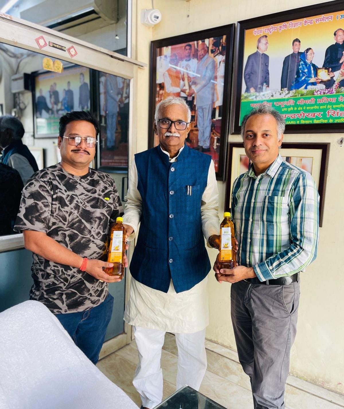 रोजाना बढ़ते जा रहे केमिकल के उत्पादों से हो रहे विभिन्न प्रकार के रोगों को देखते हुए श्री अग्रसेन युवा मंच ने की एक अहम पहल । प्राकृतिक उत्पादों के उपयोग को बढ़ाने हेतु नाटी इमली पर हुई बैठक । बैठक में श्री अग्रसेन युवा मंच के प्रमुख श्री अतुल जी अग्रवाल, पद्मश्री सम्मान से सम्मानित श्री चंद्रशेखर जी सिंह एवं श्री कृष्ण गौशाला आजमगढ़ के प्रबन्धक राकेश पांडेय जी की विशेष रुप से गरिमामयी उपस्थिति रही । पद्मश्री चंद्रशेखर सिंह ने प्रकृति के ऊपर हो रहे अत्याचारों पर रौशनी डालते हुए बताया कि आज के दिन में सभी परिवारों में सुबह से रात तक उत्पादों का नहीं बल्कि केमिकल का उपयोग किया जा रहा है जिससे आम जनजीवन में इसका विपरीत प्रभाव पड़ रहा है । इस स्थिति के कारण रोग का संक्रमण बढ़ता जा रहा है और आज सभी परेशान हैं । कृष्ण गौशाला प्रबन्धक राकेश पांडेय ने बताया कि आज सभी घर परिवार में हो रहे झगड़े का कारण है घर का वातावरण जो कि केमिकल से घिरे होने के कारण दूषित होता रहता है । जिस प्रकार पुराने घरों में गांव में घरों को गाय के गोबर से लीपा जाता था उसके पीछे प्राकृतिक शक्तियों का वास होना हुआ करता था । एक भी हम सभी को गाय के गोबर से निर्मित प्राकृतिक पेण्ट का उपयोग कर घर के वातावरण को शुद्ध बनाये रखना चाहिए । युवा मंच प्रमुख अतुल अग्रवाल ने अपने दृष्टिकोण को साझा करते हुए कहा कि आज के युग मे पुरानी औषधियों से दूरी होने का मुख्य कारण है जानकारी का अभाव होना अनर्गल उत्पादों के विज्ञापनों से घिरा व्यक्ति केमिकल युक्त उत्पादों का वसन कर रोग से ग्रसित होता है जबकि औषधि का गुण उसके हाथों में होता है । प्राकृतिक उत्पादों के ऊपर श्री अग्रसेन युवा मंच काशी में जल्द ही गोष्ठी का आयोजन कर लोगों को जागरूक करेगा ।