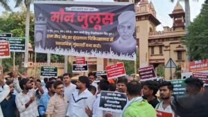 BHU ट्रामा सेंटर प्रभारी डा सौरभ सिंह के खिलाफ छात्रों ने खोला मोर्चा, हटाने की मांग को लेकर सिंह द्वार से लेकर रविदास गेट तक निकाला मौन मार्च