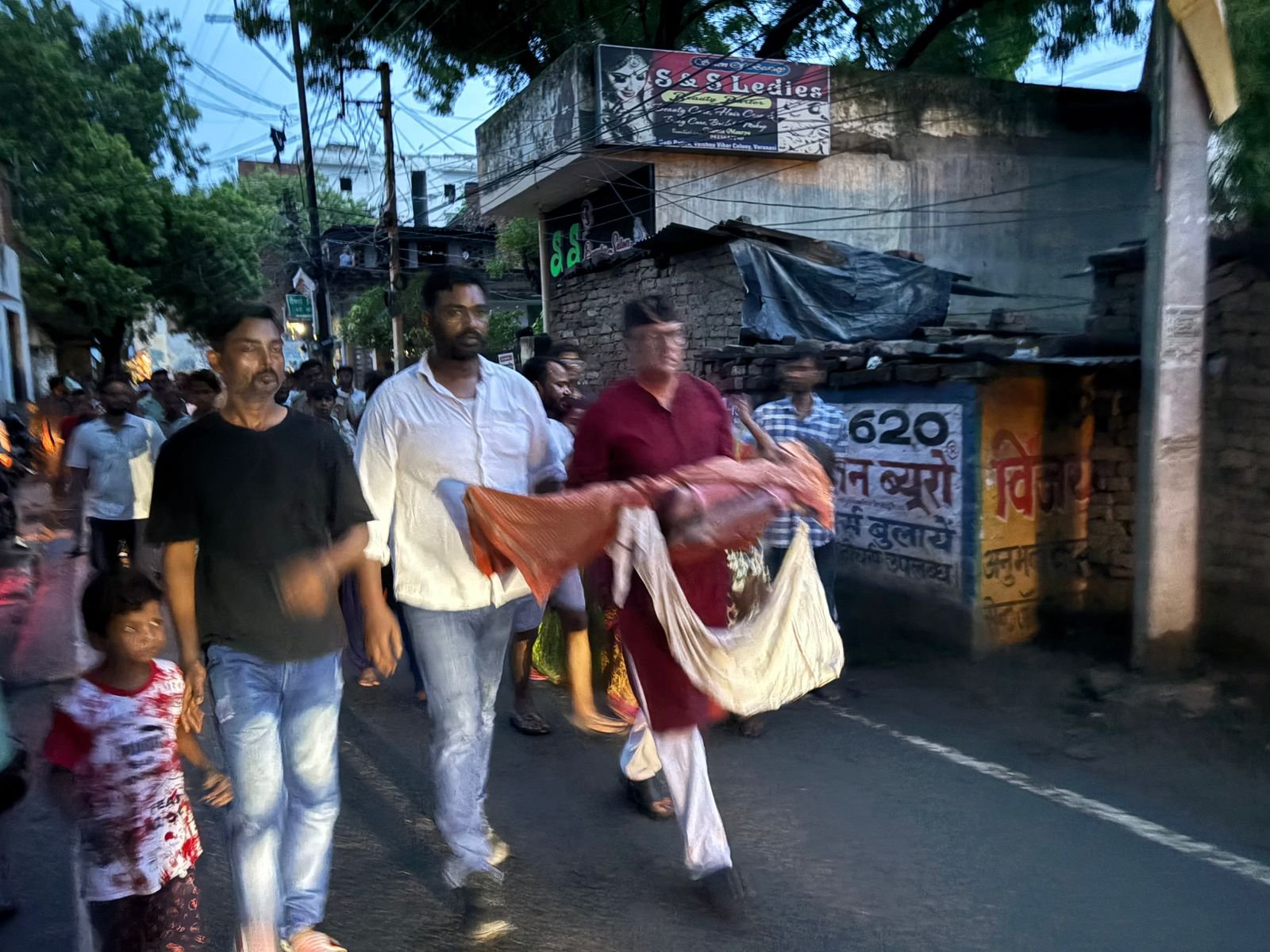 प्रत्यक्षदर्शियों के मुताबिक, पास में खेल रहे बच्चों ने गड्ढे से बुलबुले निकलते देख शोर मचाया, जिसके बाद आसपास के लोग मौके पर दौड़े और मासूम को बाहर निकाला। परिजन उसे तत्काल अस्पताल लेकर गए, जहां डॉक्टरों ने उसे मृत घोषित कर दिया। घटना की जानकारी मिलते ही इलाके में आक्रोश फैल गया। गुस्साए परिजनों और स्थानीय लोगों ने बड़ी पाटिया-ककरमता मार्ग पर शव रखकर चक्का जाम कर दिया। मौके पर भेलुपुर एसीपी गौरव कुमार और थानाध्यक्ष सुधीर कुमार त्रिपाठी फोर्स के साथ पहुंचे और प्रदर्शनकारियों को शांत कराने की कोशिश की, लेकिन लोग त्रिदेव ग्रुप के खिलाफ कार्रवाई और मुआवजे की मांग पर अड़े रहे। स्थानीय लोगों का आरोप है कि त्रिदेव ग्रुप के निर्माण कार्य से जुड़े कर्मचारियों को पहले भी कई बार गड्ढा पाटने के लिए कहा गया था, लेकिन कोई कार्रवाई नहीं की गई, जिससे यह हादसा हुआ। मौके पर पहुंचे कैंट विधायक सौरभ श्रीवास्तव ने भी परिजनों से मुलाकात की और घटना पर दुख जताया। बच्चे की माँ को बिलखते देख विधायक सौरभ भी रो पड़े। विधायक वहीँ सड़क पर परिवार के साथ बैठ गए। परिजनों ने कहा कि वह मुकदमा नही लड़ सकेंगे। माता-पिता को यथासंभव मुआवजा दिलवा दीजिए। विधायक ने बिल्डर से इस गरीब परिवार के लिए अधिक से अधिक मुआवजा देने का आग्रह किया, जिसे बिल्डर ने मान लिया। साथ ही विधायक ने आपदा राहत कोष से अनुमन्य धनराशि देने के लिए जिला प्रशासन को निर्देश दिया। मुआवजे की राशि मिलने तक विधायक वहीं रुके रहे। देर शाम विधायक ने बच्चे के शरीर को सड़क से स्वयं उठाकर उसके घर पहुंचाया। विधायक सौरभ के साथ महानगर महामंत्री अशोक पटेल, पार्षद गण मदन मोहन तिवारी, नवनीत पांडेय अतुल, मण्डल अध्यक्ष जीतेन्द्र पटेल, पूर्व पार्षद अजय गुप्ता, प्रिंस केसरी, अमरनाथ पटेल, रोहित गुप्ता, सुमित पांडेय, अमित गुप्ता, अनूप सिंह, अनुज पांडेय, गोविंद वर्मा, धर्मेंद्र पाल, मोनू मिश्रा, सतीश राजभर, प्रभु पटेल, अनवर अहमद व अन्य कई कार्यकर्ता अन्तिम यात्रा में सम्मिलित हुए।