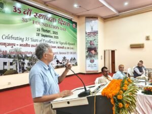राजातालाब। आराजी लाइन विकासखंड क्षेत्र के शाहंशाहपुर स्थित भारतीय सब्जी अनुसंधान संस्थान ने बड़े हर्षोल्लास के साथ अपना 35 वाँ स्थापना दिवस मनाया। दीप प्रज्वलन और संस्थान के ध्येय वाक्य “विज्ञान-आधारित सब्जी विकास: स्वस्थ एवं समृद्ध भारत की ओर” के उद्घोष से शुरू हुआ यह समारोह देश की पोषण और आर्थिक सुरक्षा में संस्थान के ऐतिहासिक योगदान को दर्शाता है।संस्थान ने अब तक 33 सब्जी फसलों में 133 उन्नत किस्में (25 संकर सहित) विकसित की हैं। इनमें काशी मनु (कलमी साग), काशी अन्नपूर्णा (पंखिया सेम), काशी उदय, काशी नंदिनी (सब्जी मटर), काशी कंचन (लोबिया), काशी क्रांति (भिंडी), काशी अमन (टमाटर), काशी अनमोल (मिर्च), काशी गंगा (लौकी) और काशी तरु (बैंगन) जैसी किस्में किसानों में व्यापक रूप से लोकप्रिय हुई हैं। संस्थान ने टोमैटो ग्राफ्टिंग, पोमेटो, ब्रिमेटो, माइक्रोन्यूट्रिएंट फॉर्मुलेशन (काशी सूक्ष्म शक्ति) और एफपीओ आधारित तकनीक वितरण मॉडल के माध्यम से किसानों की आय बढ़ाने में महत्वपूर्ण भूमिका निभाई है। हरी मिर्च पाउडर, इंस्टेंट लौकी खीर मिक्स, इंस्टेंट सहजन सूप मिक्स, करेला चिप्स और कद्दू हलवा मिक्स जैसे मूल्य संवर्धित उत्पादों से ग्रामीण उद्यमिता को नई दिशा मिली है।कार्यक्रम के मुख्य अतिथि डॉ. मंगला राय, पूर्व सचिव डेयर एवं महानिदेशक, आईसीएआर ने कहा कि कृषि को समेकित समग्र रूप में देखने की जरूरत है. उन्होंने कहा कि आईआईवीआर ने सब्जी क्रांति का नेतृत्व करते हुए देश में सब्जियों की उत्पादकता और गुणवत्ता को नई ऊंचाइयों तक पहुंचाया है। भविष्य में जलवायु स्मार्ट फसलें, पोषक तत्वों से भरपूर किस्में और शहरी खेती मॉडल भारत की खाद्य सुरक्षा को मजबूत करेंगे। उन्होंने वैज्ञानिकों से मृदा सूक्ष्मजीवों, सेकेंडरी एग्रीकल्चर, मृदा कार्बन तत्वों पर विशेष शोध करने की अपील की और कहा कि समेकित शोध की दिशा में कार्य करना होगा। विशिष्ट अतिथि डॉ. सुधाकर पांडेय, सहायक महानिदेशक, भाकृअनुप, नई दिल्ली ने बताया कि वर्तमान में लगभग 9 किलोग्राम प्रति व्यक्ति प्रति माह फल-सब्जी उपलब्ध है। उन्होंने कहा कि 25 वर्ष बाद लगभग 592 मिलियन टन और 34 टन प्रति हेक्टेयर उत्पादकता की आवश्यकता होगी। उन्होंने बहु-रोग प्रतिरोधी किस्मों, सुरक्षित सब्जी उत्पादन और आधुनिक तकनीकों के प्रयोग पर जोर दिया। संस्थान के निदेशक डॉ. राजेश कुमार ने कहा कि संस्थान का लक्ष्य सब्जियों को केवल पोषण का साधन न बनाकर किसान समृद्धि और सतत आजीविका का आधार बनाना है।