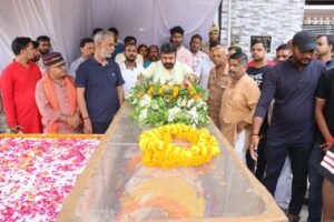 श्रद्धांजलि देने वालों में मंत्री जी के साथ संजय मिश्रा, डॉ. हरदत शुक्ला, सिंधु सोनकर, गौरव राठी, जय विश्वकर्मा,