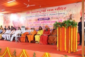 उन्होंने महिलाओं से कहा कि आप जितनी सिलाई करेंगी, आपकी आय में उतनी अधिक वृद्धि होगी। उन्होंने प्रदेश में संचालित वन डिस्ट्रिक्ट वन प्रोडक्ट का उदाहरण भी दिया तथा कहा कि महियायें यहां कपड़ा जो तैयार करेंगी उसको पूरे विश्व की महिलाएं पहनेंगी। प्रदेश की राजधानी में 1100 एकड़ में वस्त्र मित्र पार्क बन रहा। प्रदेश के अनेकों जगहों पर टेक्सटाइल पार्क बनाया जा रहा है, जो आने वाले समय में वस्त्र रोजगार के लिए वरदान साबित होगा। यह मठ देव वाणी संस्कृत के लिए भी लगातार कार्य कर रहा है। अन्नपूर्णा मंदिर के संस्कृत महाविद्यालय के बच्चे सभी कार्यक्रमों में वैदिक मंत्रोच्चार करके माहौल को आध्यात्मिक बना देते हैं। यहां गौसेवा भी बहुत अच्छे से की जा रही है। भारत की यही संस्कृति रही जिस पद्धति को ये मठ बहुत तेजी से आगे बढ़ा रहे है। यहां छात्रों को संस्कृत परम्परा के साथ जुड़कर आधुनिक शिक्षा दी जा रही है। आने वाले समय में दुनिया को जोड़ने वाली भाषा संस्कृत ही होगी। संस्कृत के उत्थान हेतु सरकार ने स्कॉलरशिप तथा रहने खाने, उच्च स्तर पर शोध हेतु लगातार कार्य कर रही है। दुनिया का पहला विश्वविद्यालय तक्षशिला भी भारत की ही देन है, जिसकी उपज पाणिनि थे जिनका व्याकरण हमको देखने को मिलता है। महर्षि वाल्मीकि ने दुनिया का पहला संस्कृत महाकाव्य रचा था। संस्कृत दिव्य ज्ञान की भाषा है जिसमें आध्यात्मिक ज्ञान के साथ भाव भी चाहिए तभी विश्व कल्याण का रास्ता निकलेगा।