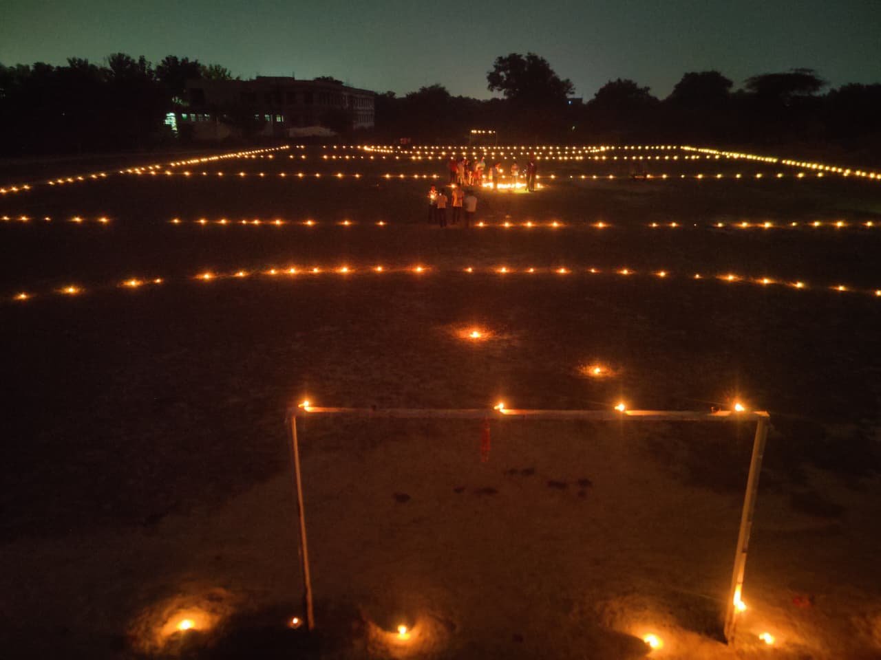 खिलाड़ियों ने 1000 दीप जलाकर खेल मैदान को किया जगमग